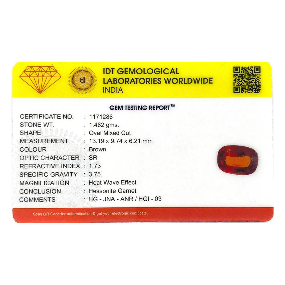 Original Natural Hessonite (Gomed) weighing 6.86 Carat (7.63 Ratti) From Africa (IDT lab certified)