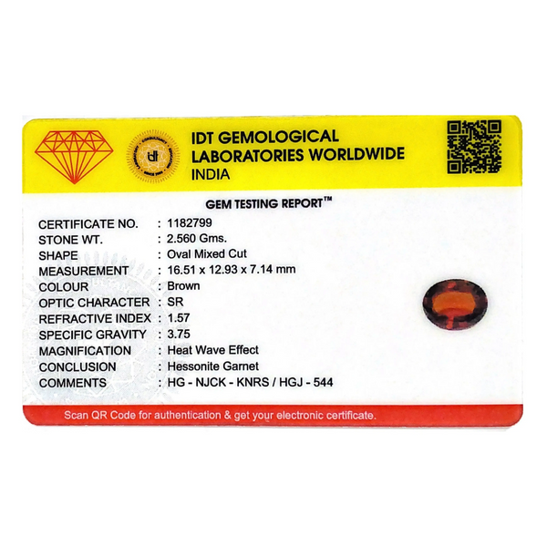 Original Natural Hessonite (Gomed) weighing 12.8 Carat (14.23 Ratti) From Srilanka (IDT lab certified)