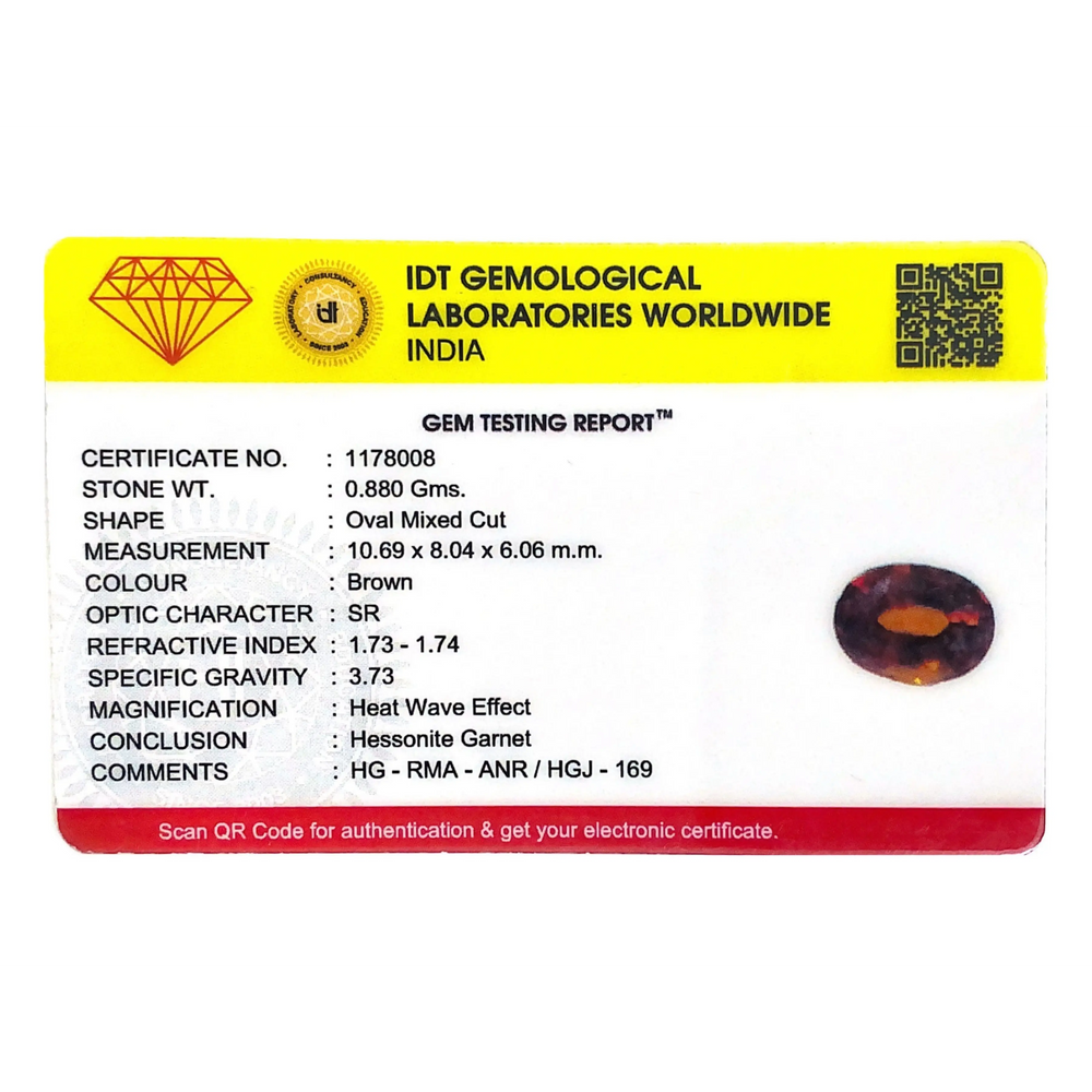 Original Natural Hessonite (Gomed) weighing 4.4 Carat (4.89 Ratti) From Srilanka (IDT lab certified)