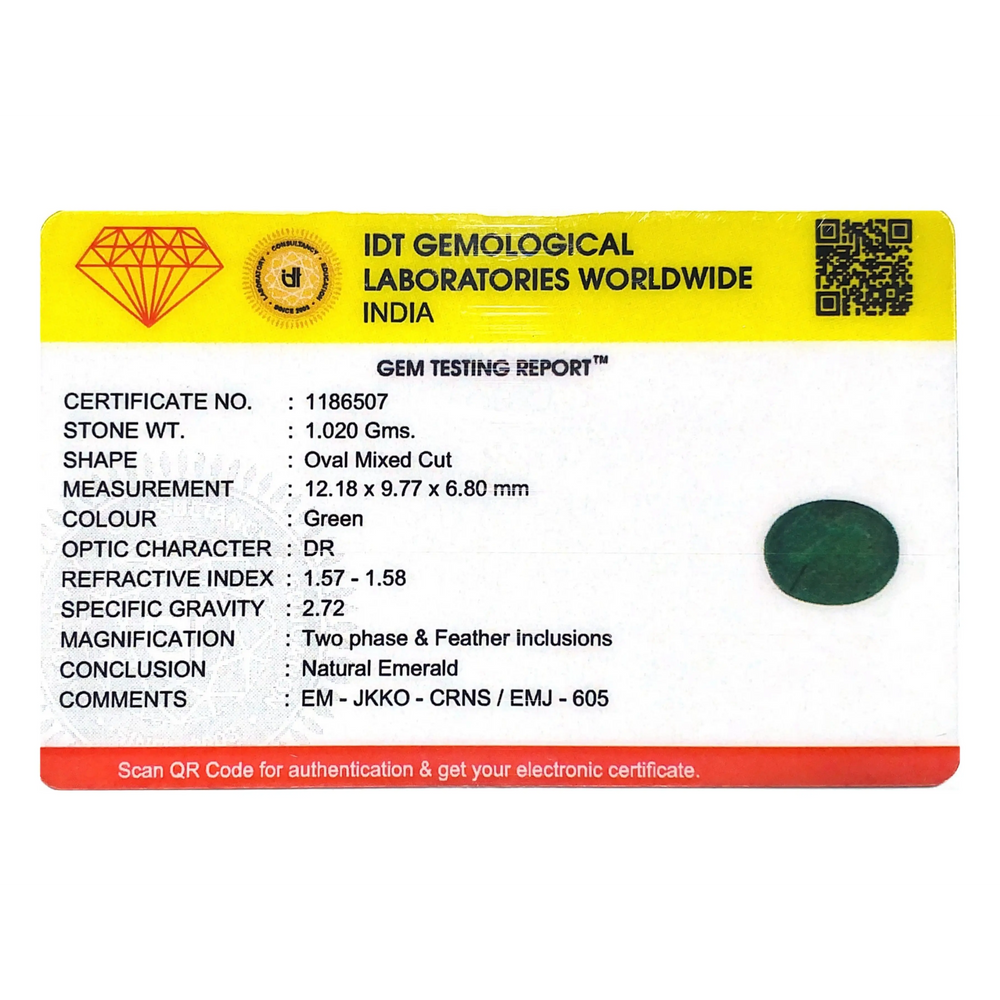 Original Natural Emerald weighing 5.1 Carat (5.67 Ratti) From Zambia (IDT lab certified)